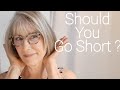 Should I go short questionnaire: 1) Do I have a a color or highlights that I just had done a weeks ago? If you just spent money on your hair get your value out of it first before cutting it off. 2) Am I active? Am I always on the move? Cutting it short may not be right for you. Short hair takes time to style. A cut that you can put back in a pony quickly may be better. 3) Do I feel I am good at working with my hair? Short cuts take more time and you may need to learn how to style it to make it do what you want it to do. Also if you have neck or shoulder problems it may be painful to be holding your hands and arms above your shoulders to style it. 4) Will the new cut fit your face shape and hair texture? You can watch mine or other you tube videos to get an idea of what styles will work best with your face shape as well as with your hair texture. Hair acts differently when cut into a different style. Ask your hairdresser what they feel works best with what you have. 5) Could this be an impulse cut? Impulse cuts can go good but they can also go really wrong! When you are going through a difficult time in your life you may feel that you really just want to cut it all off! You don't want to regret your decision so take a few days or weeks to mull it over. Realize that though you may be in a difficult space that will not always be the case. It is better to be sure than to be in a worse space. Because then your not only have difficulty but you also hate your hair which will just bring you down. Thanks for watching :)